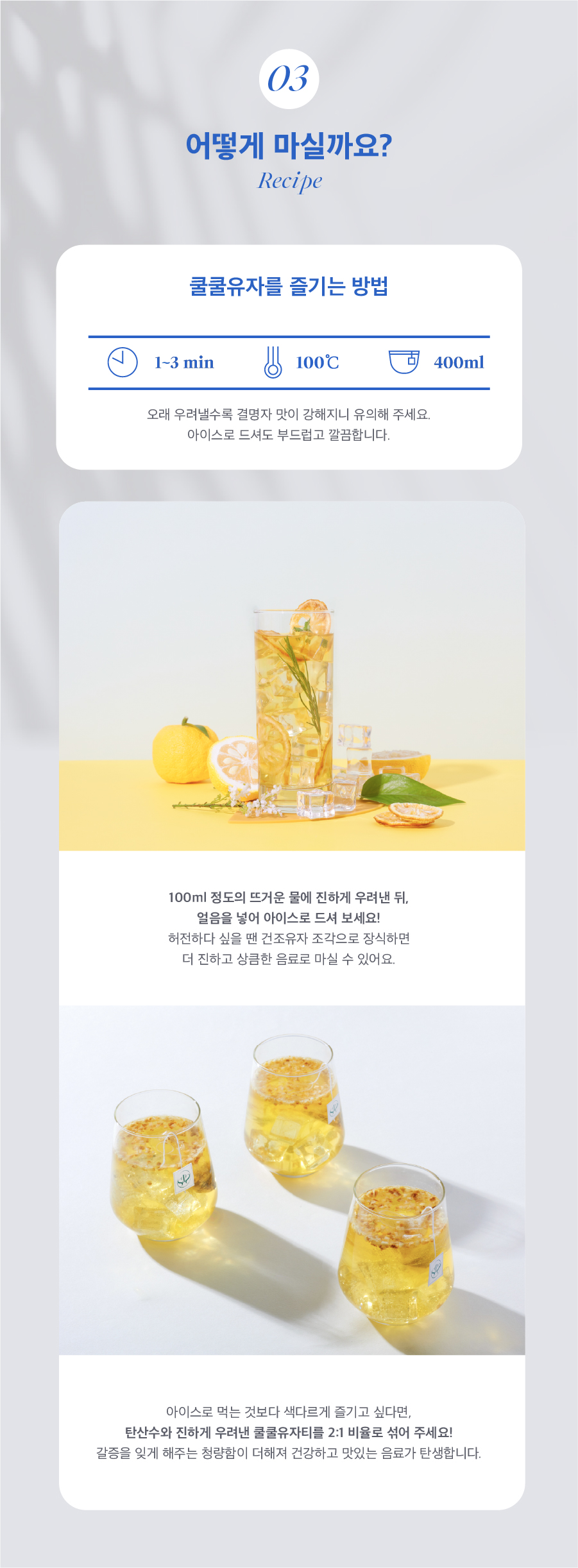 쿨쿨 유자티는 칼로리 걱정없이 유자 본연의 향과 효능은 살리고