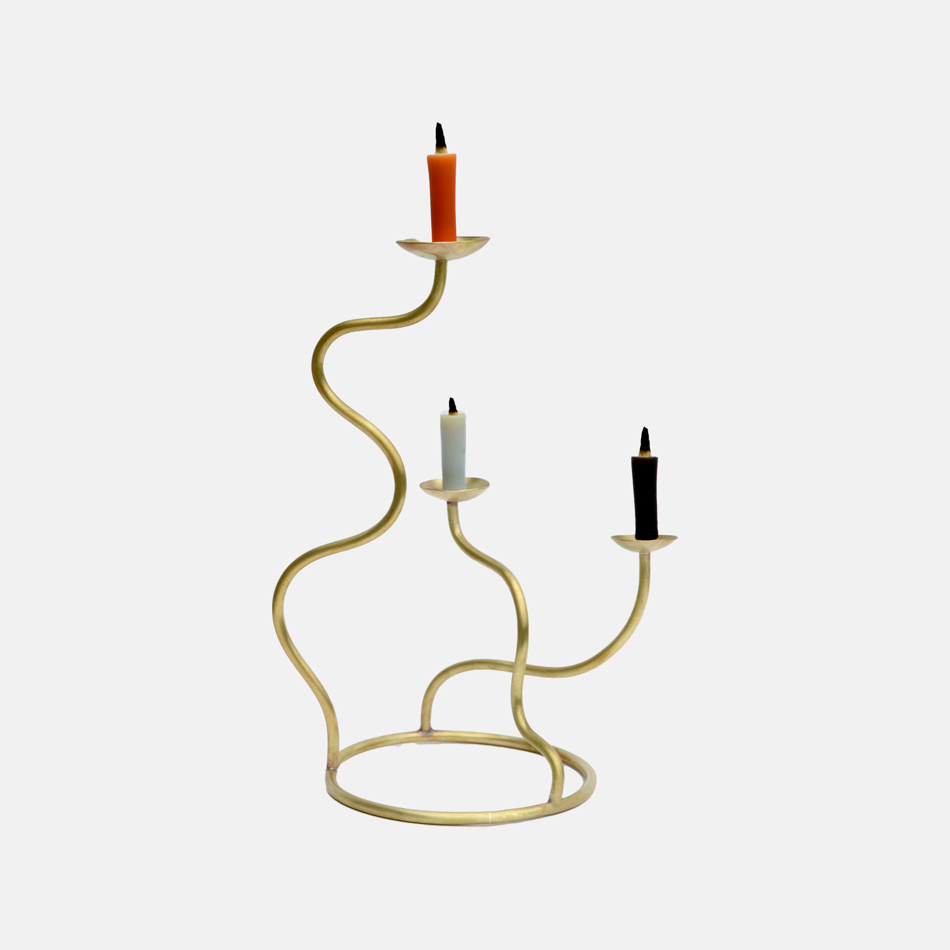 고요한 밤에 어울리는 감각적인 곡선이 돋보이는 황동 촛대입니다.