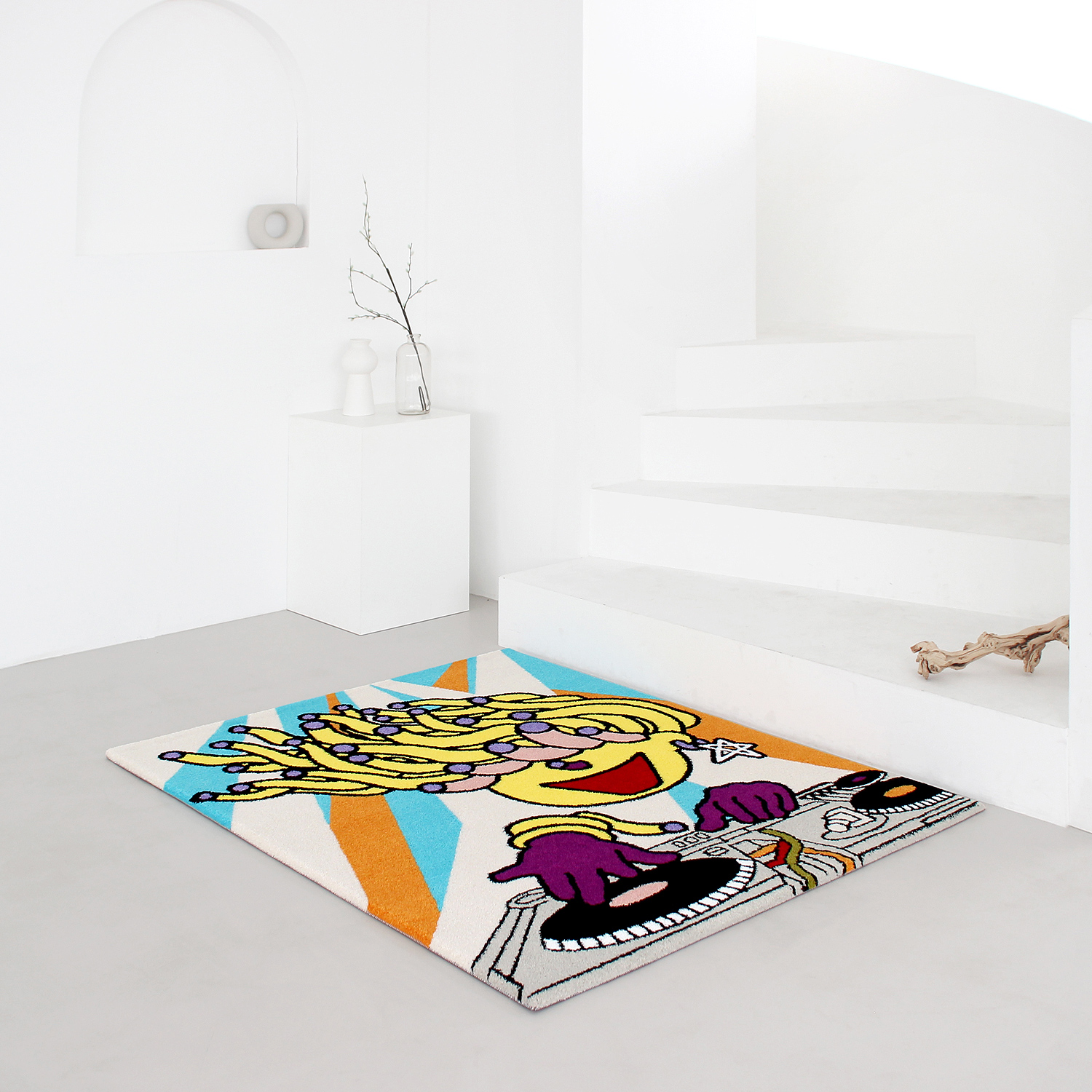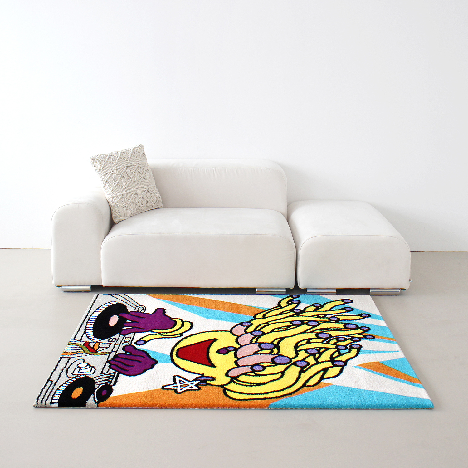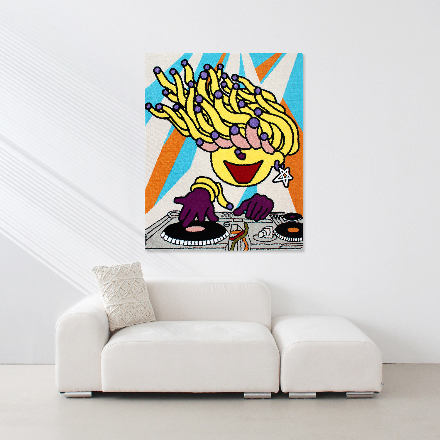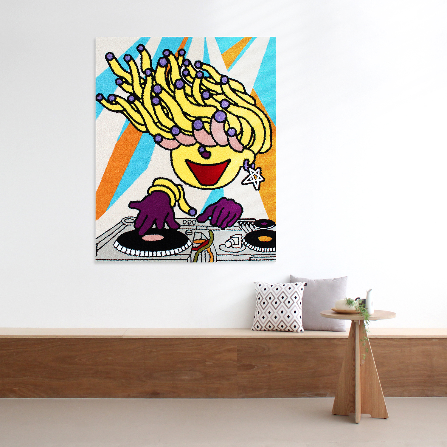 최나리 작가의 <DJ Mato> 작품과 얀 카페트의 기술이 만나 생활 속에서 즐길 수 있는 작품 겸 소품으로 새롭게 탄생되었습니다.