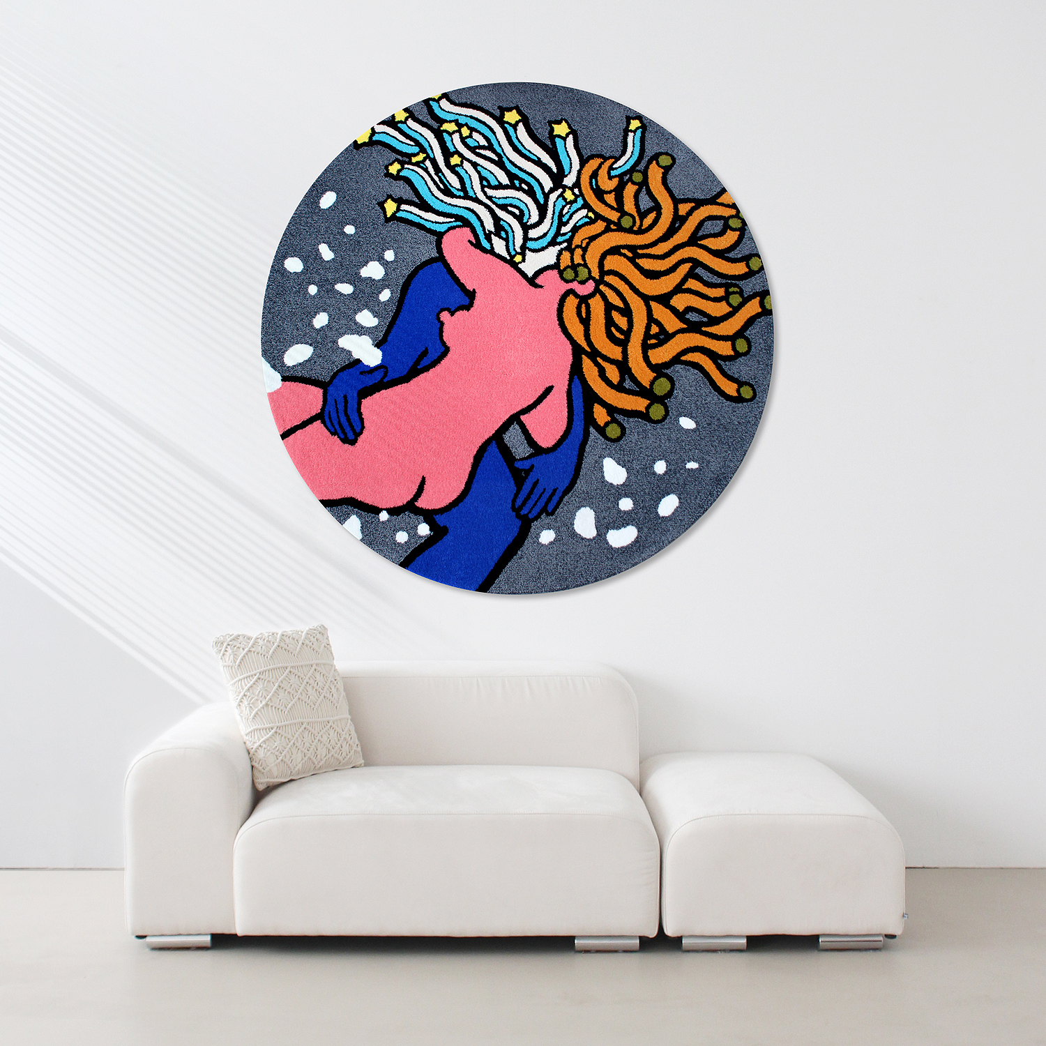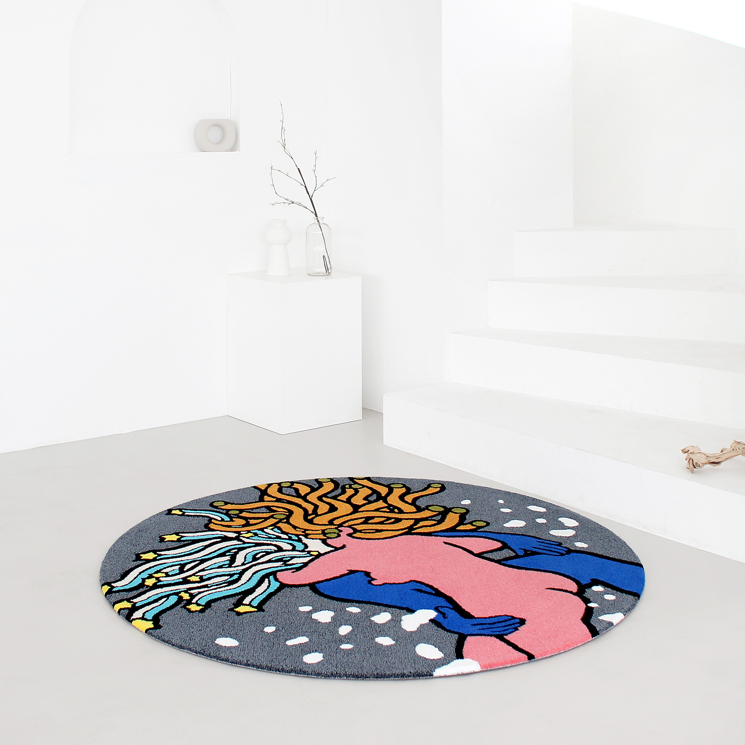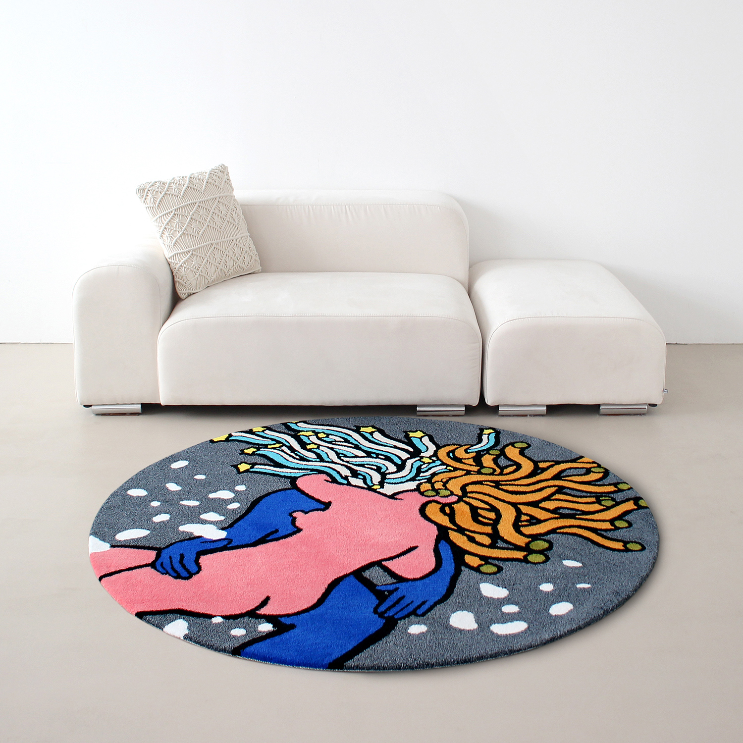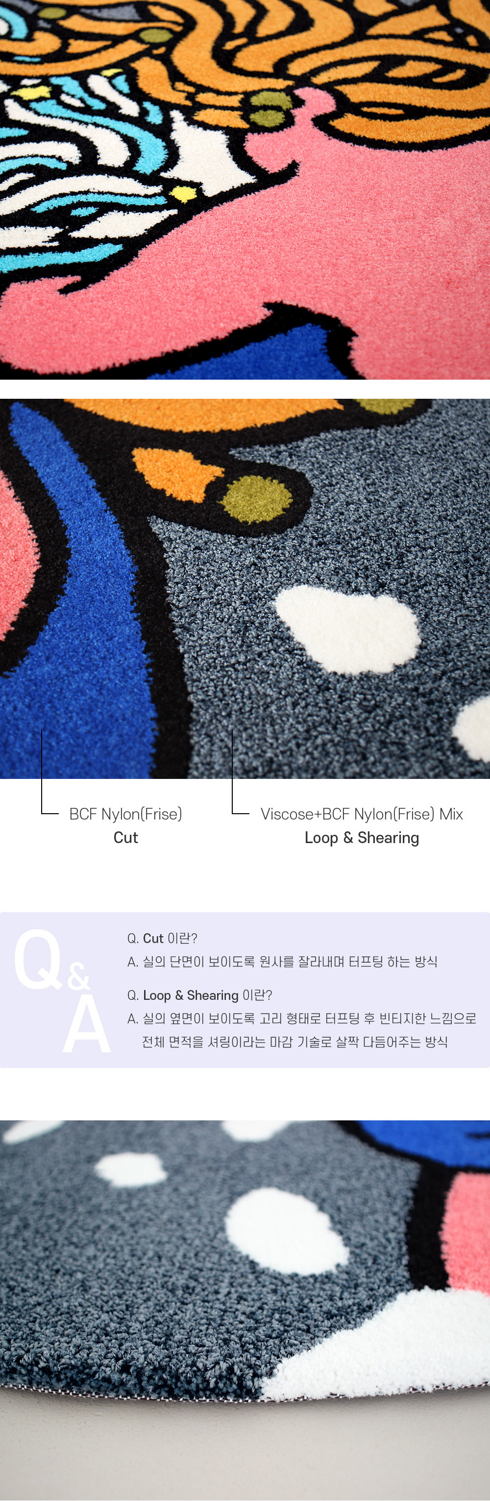 BCF Nylon과 Viscose 소재를 믹스하여 밀도감 있게 터프팅한 카페트 겸 작품입니다. 넉넉한 쿠션감과 더불어 일상 속 작은 소음을 방지해줍니다.